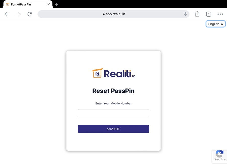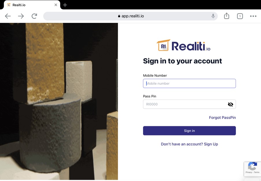 - After generating your new Passpin go back to the sign-in page “app.realiti.io” through your browser as mentioned in the first point, and re-enter your mobile number along with your new Passpin